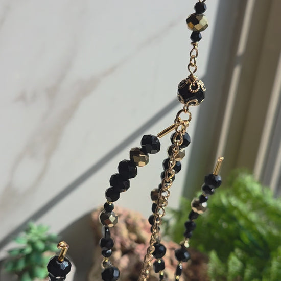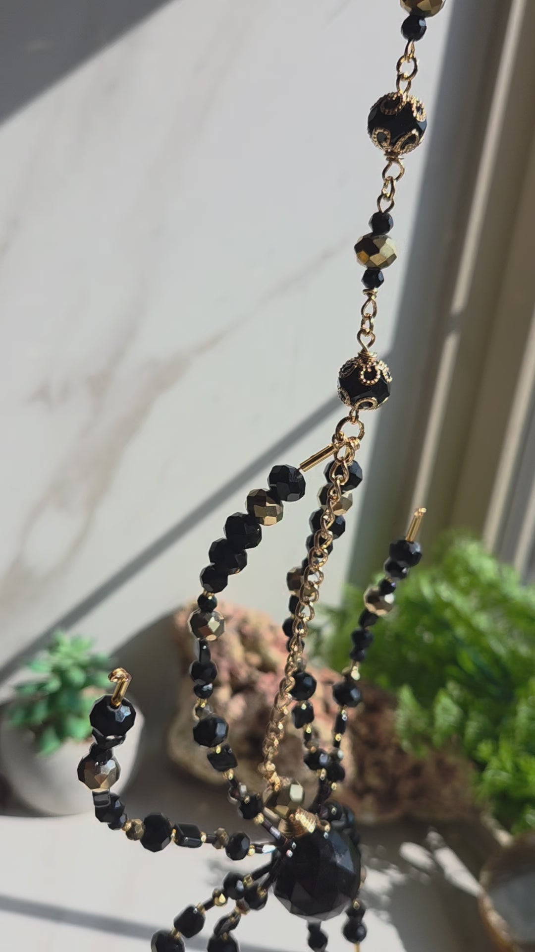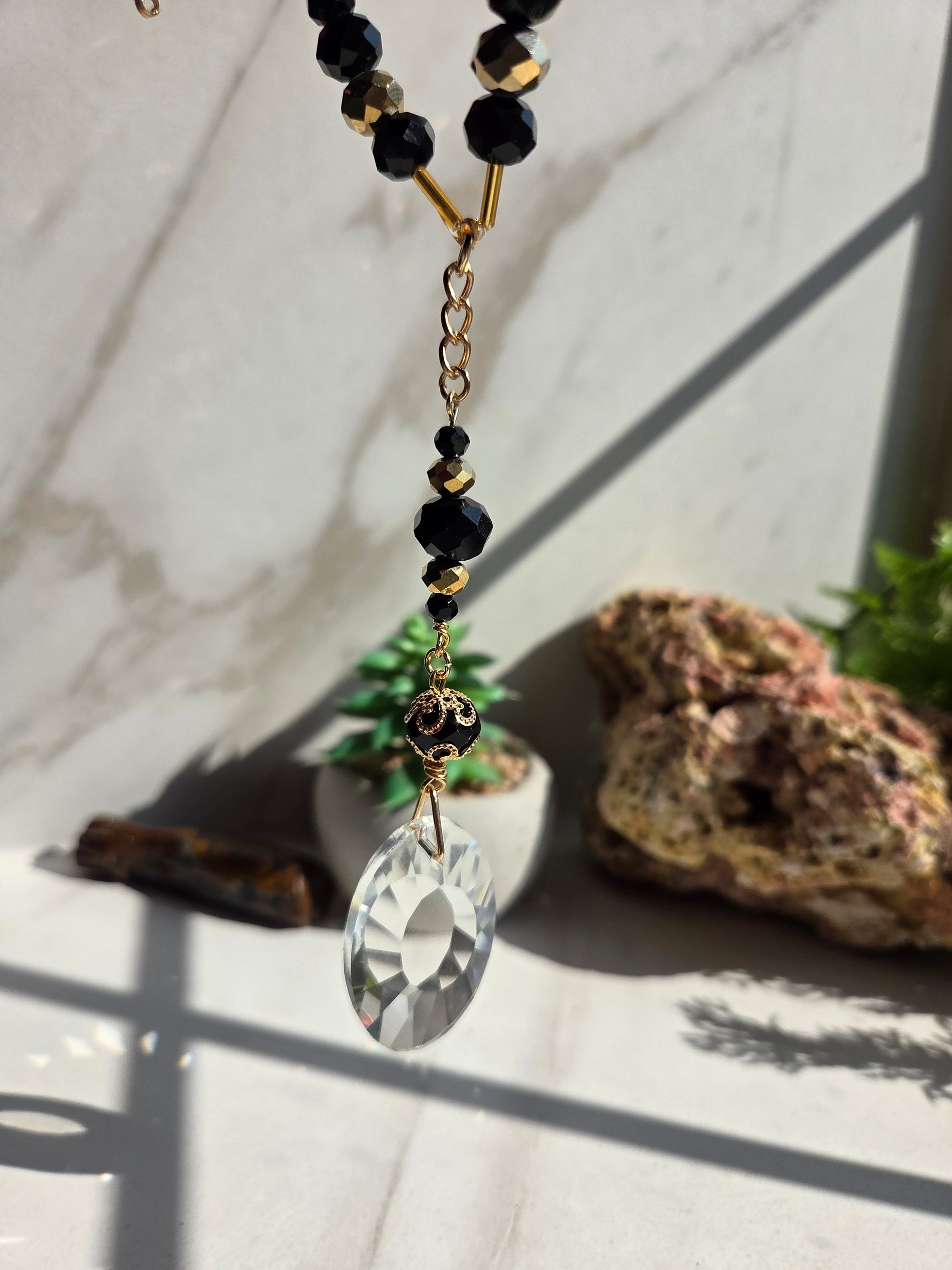 ✨ Materials: Glass suncatcher beads, black tourmaline beads, silver-plated wire, silver-plated chain, accent beads, suncatcher crystal