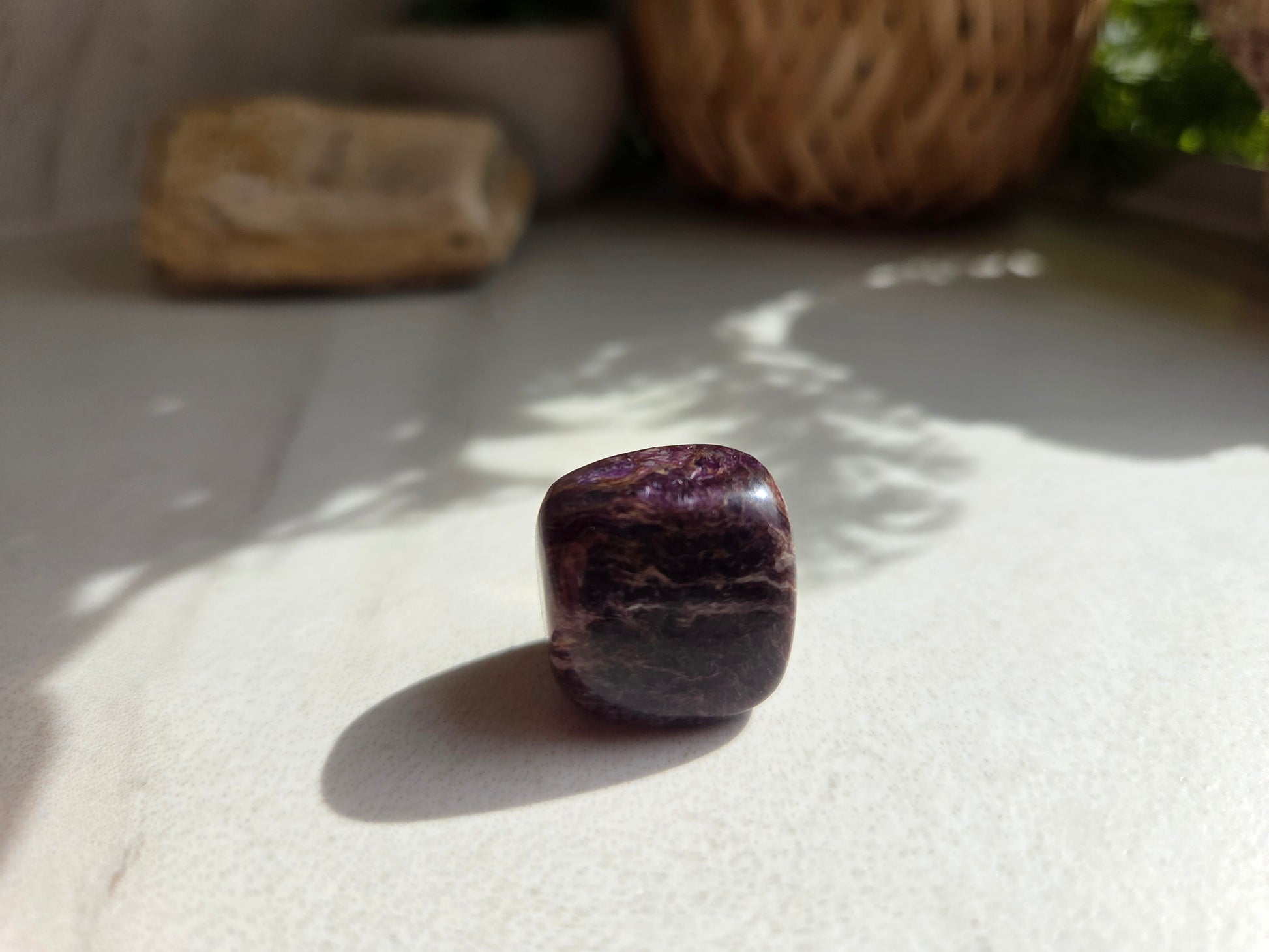 This beautiful Charoite cube features deep, moody tones of violet with subtle swirling patterns that give it a rich, earthy character. Though smaller in size, it carries the unique energy and unmistakable look that makes charoite so loved.