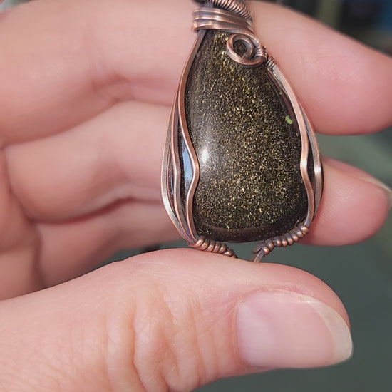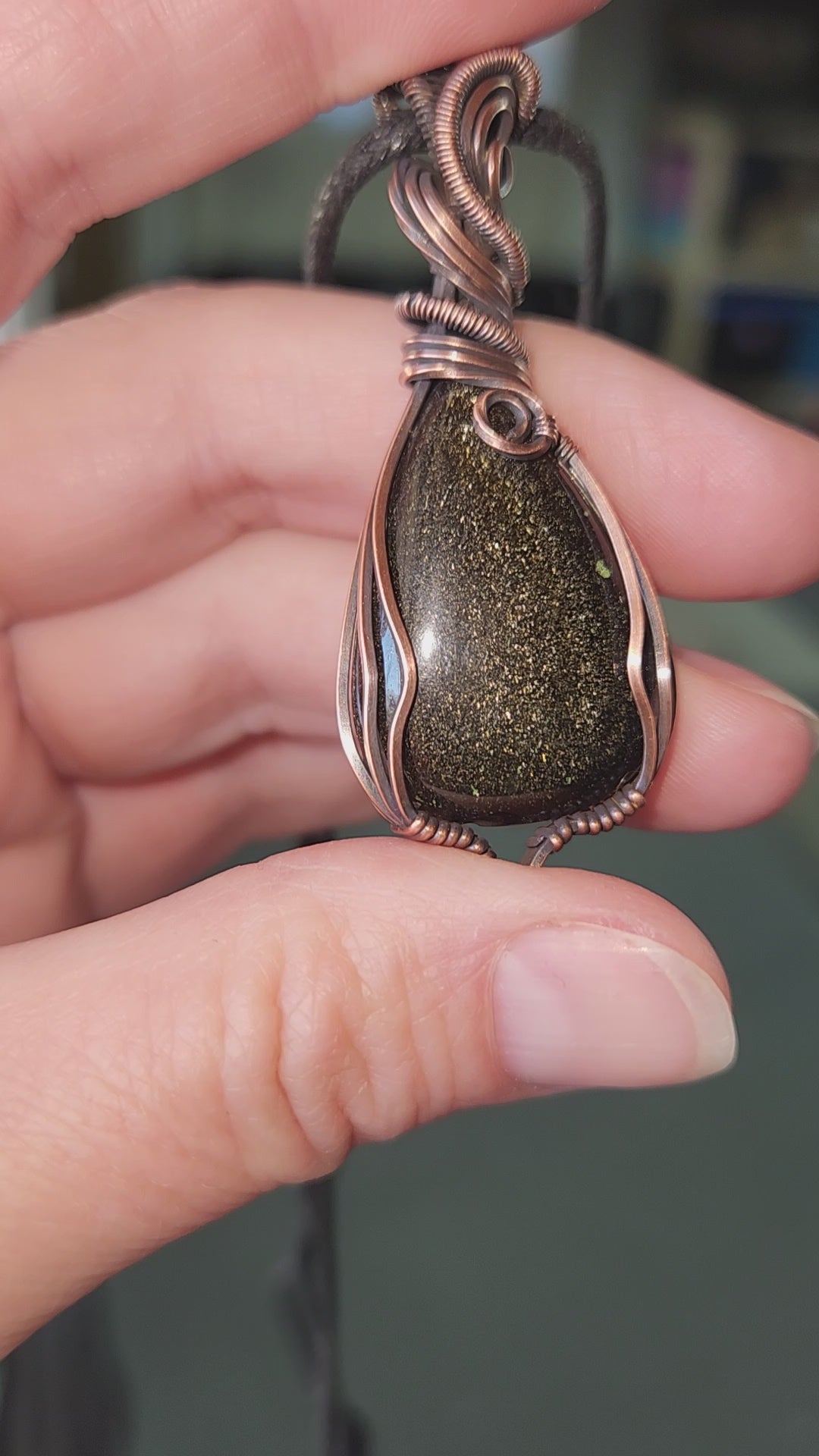 Goldwn Obsidian Necklace – Antiqued Copper Wire-Wrapped